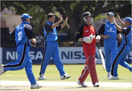 Chris Silverwood, in his first match out here, began by scalping skipper Alistair Campbell - caught behind down the leg side in the second over of the match.Campbell was furious, reckoning the ball had only hit his thigh pad.